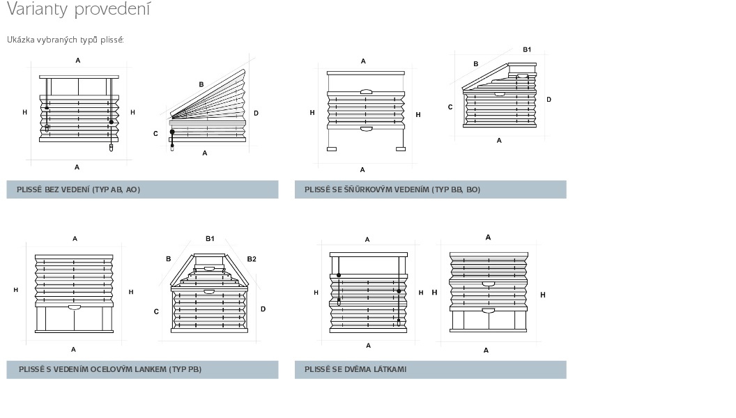 Plissé je skládaná látková žaluzie, která oblékne Vaše okna, zútulní interiér a samozřejmě poskytne zastínění šité na míru vaší místnosti. Vybrat si můžete plisované látky s různým stupněm propustnosti světla, látky zatemňující, s napařovanou hliníkovou vrstvou, která eliminuje sílu tepelného záření nebo látky s perleťovými nátěry s vysokým stupněm odrazu světla.
